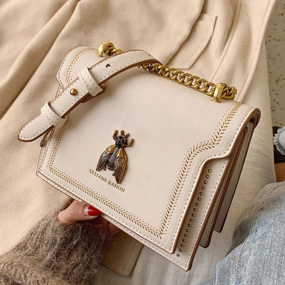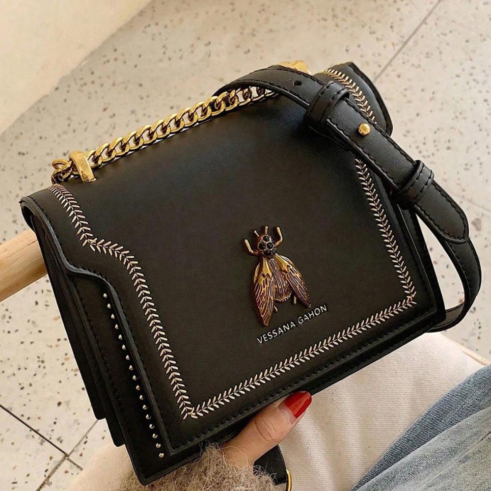 حقيبة كتف صغيرة النحلة الكلاسيكية هي الاختيار المثالي لإطلالة أنيقة وفاخرة. تتميز بتصميم مربّع أنيق مع زخرفة نحلة فريدة وسلسلة معدنية، مما يضيف لمسة من الفخامة والتميز. مصنوعة من الجلد الفاخر، ومتوفرة باللون الأسود، أوف وايت، والبيج الغامق، لتناسب مختلف الأذواق.