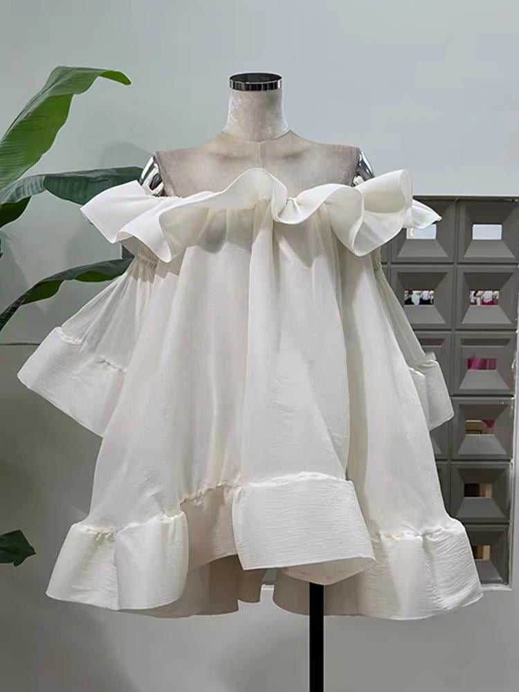 فستان مصمم مثير بكتف واحد مكشكش بدون حمالات لخريف 2025 ملابس نسائية فستان الأميرة فستان منتفخ فضفاض عصري